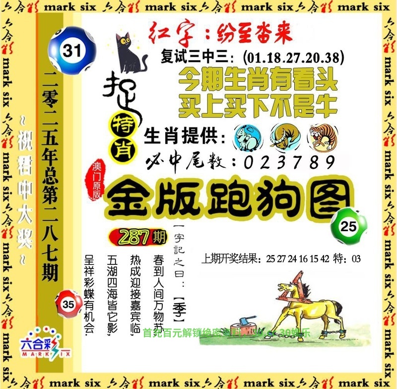 287期:七肖【猴鸡虎马狗羊猪】开:猴34准